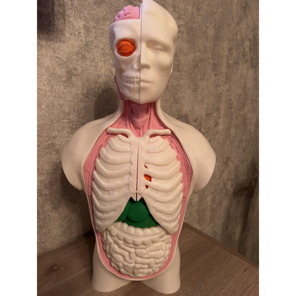 Висока точність анатомічних структур: Кожен орган — від серця та легень до печінки та кишечника — виконаний з урахуванням реальних пропорцій та анатомічних особливостей дорослої людини. Це допомагає студентам краще орієнтуватися в просторовому розташуванні органів.